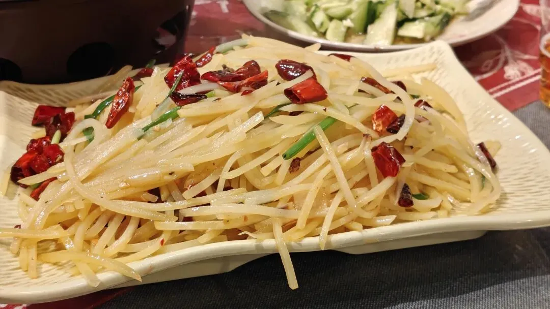 酸辣土豆丝,让我想起以前上大学的时候,校门口附近街上一家川渝菜馆,味道几乎一模一样,说不上来的一种古早味。