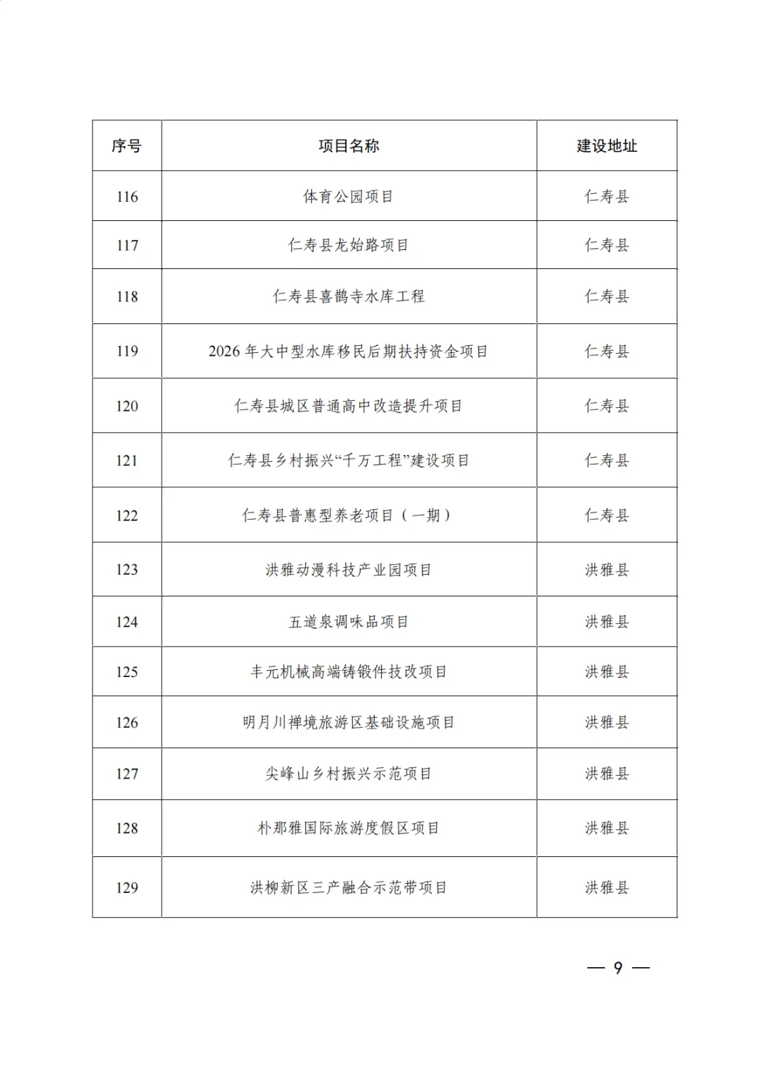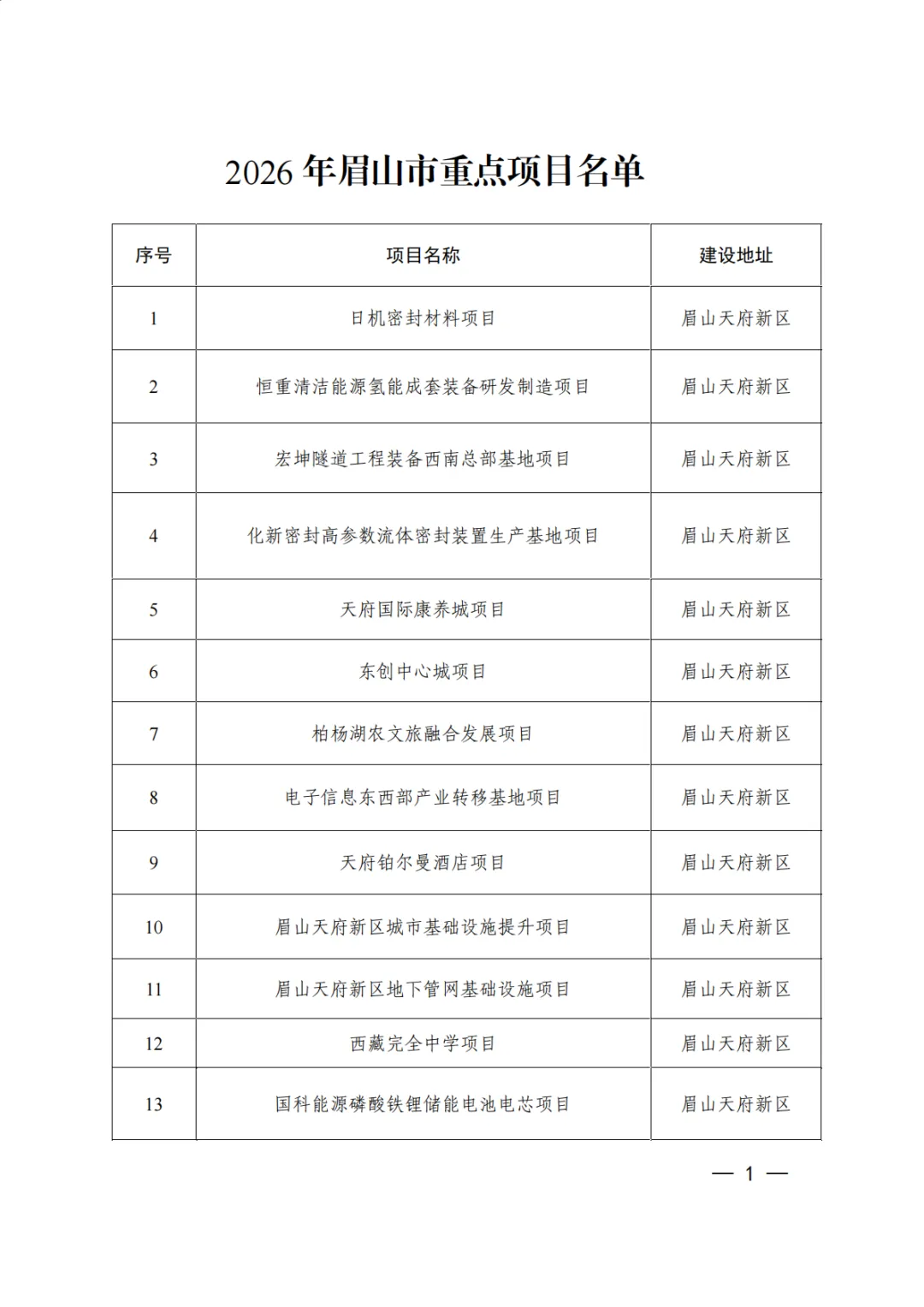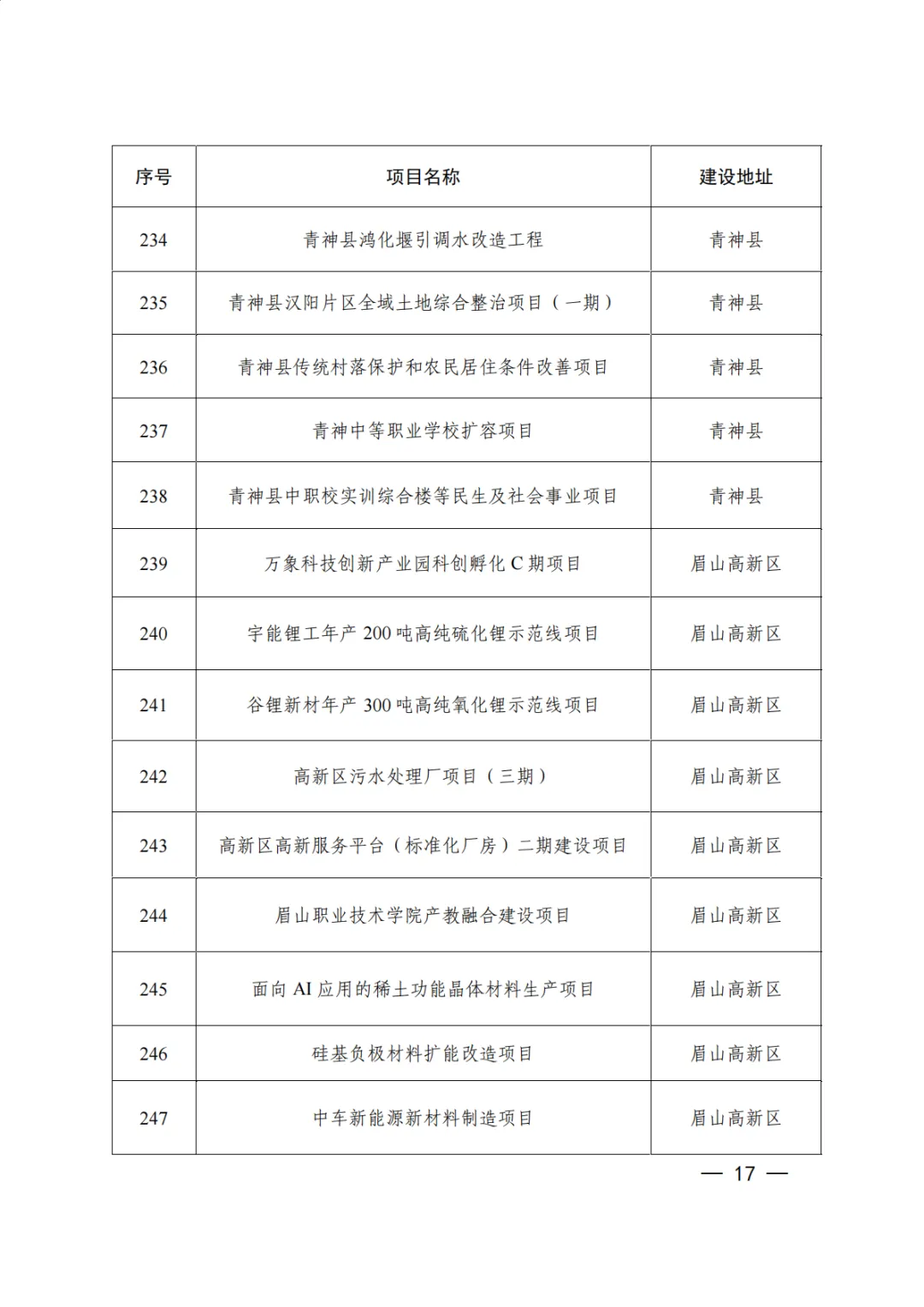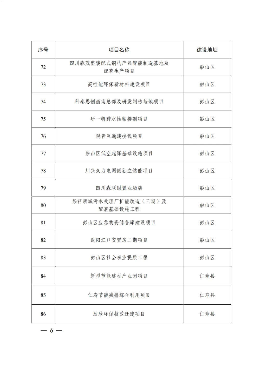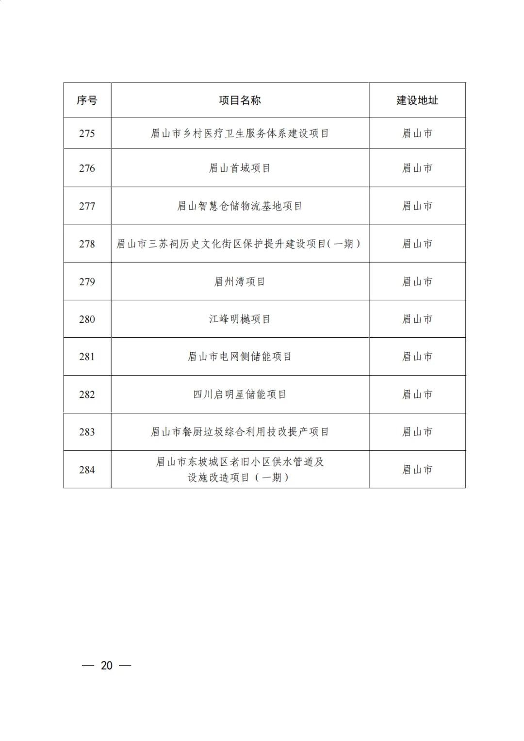 数据名称:市级项目清单-眉山市
