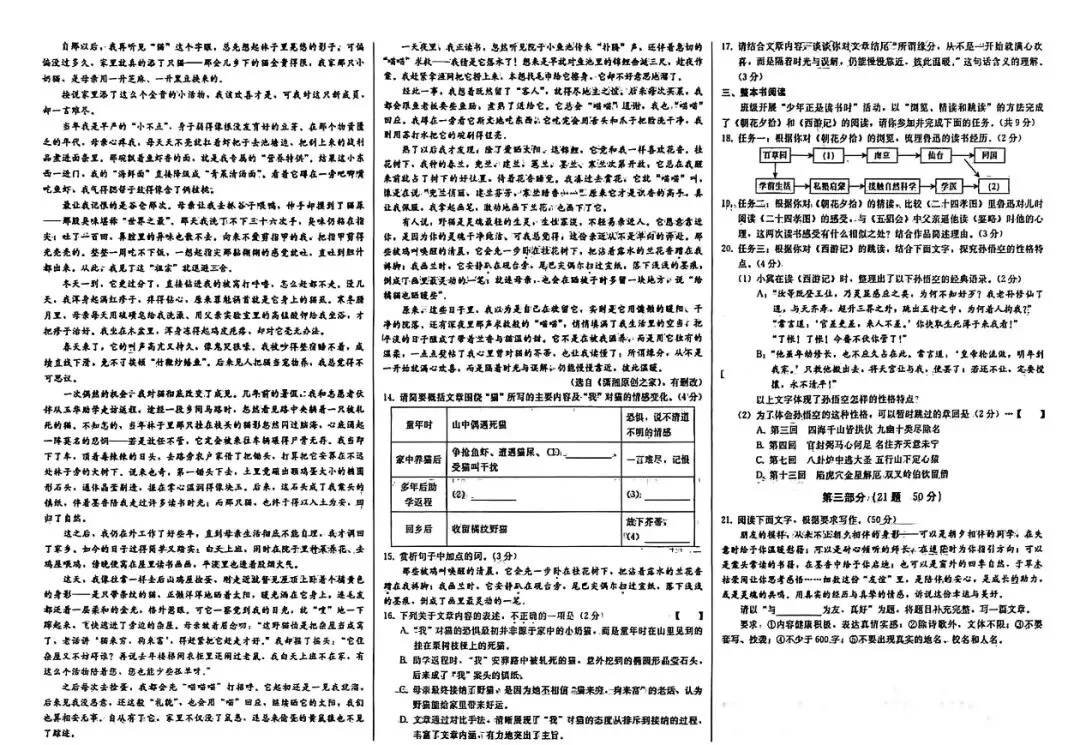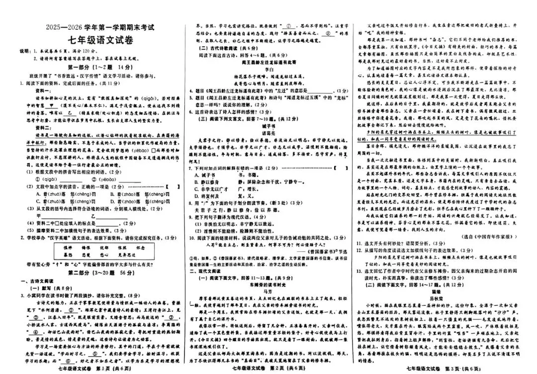 >拔高真题 | 邢台七年级上学期期末语文卷