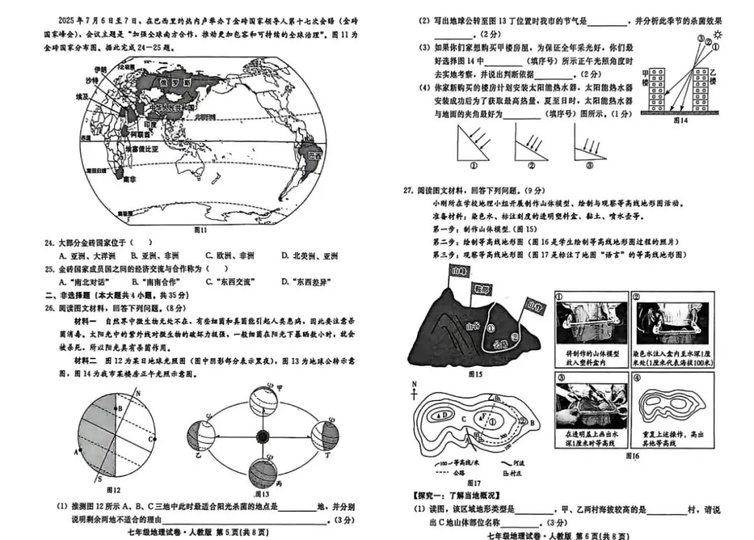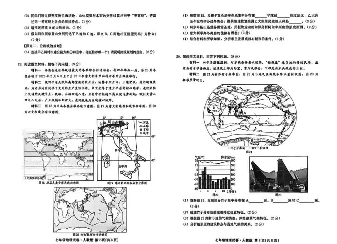 >拔高真题 | 邢台七年级上学期期末地理卷
