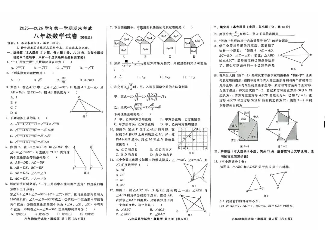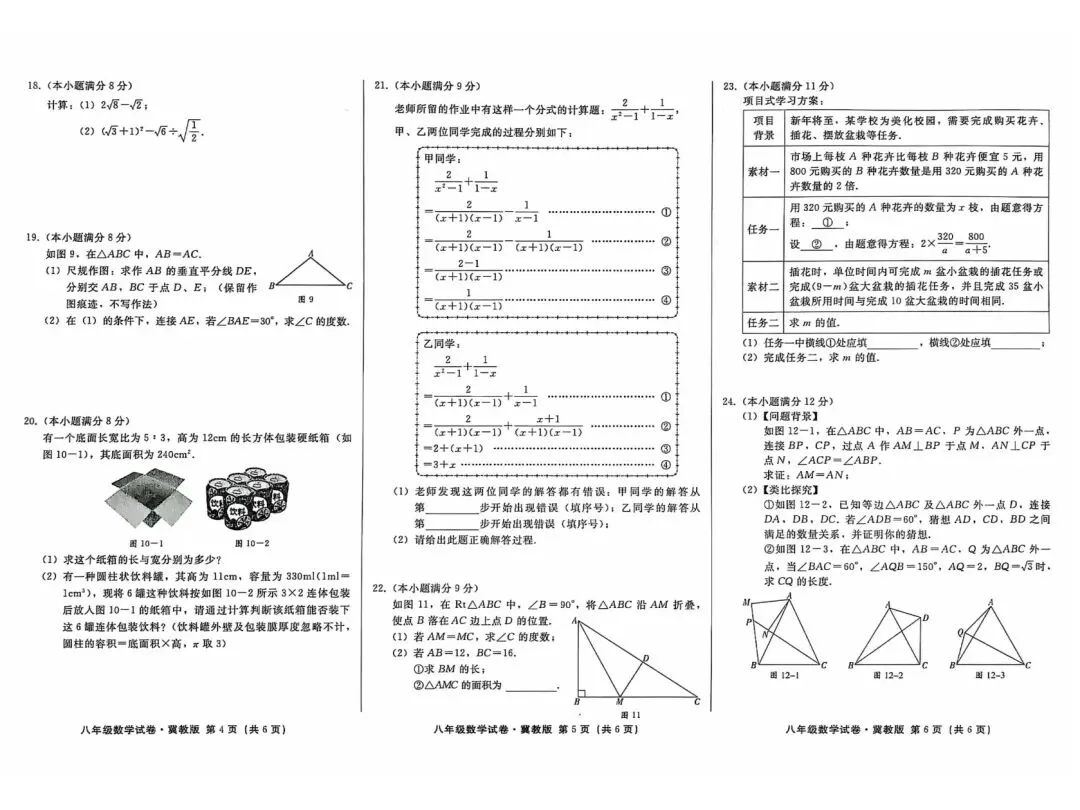 >拔高真题 | 邢台八年级上学期期末数学卷