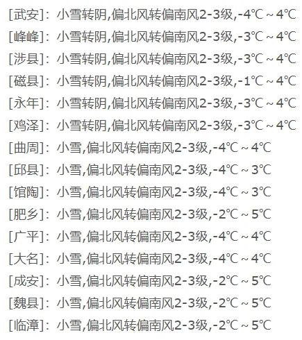 邯郸市区最高气温也仅有0.4摄氏度