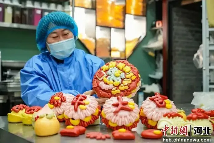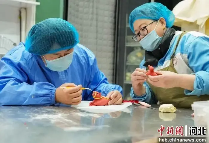 1月28日上午,在河北省邯郸市丛台区一处非遗花馍制作间,几位非遗花馍传承人正忙着和面、塑形、雕花,制作马年主题花馍。