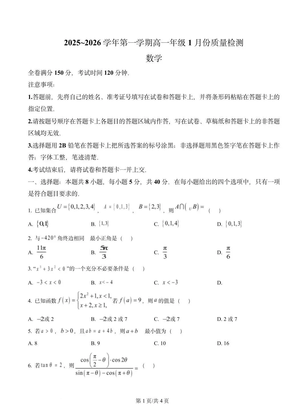 当前位置:首页>石家庄>河北省石家庄市七县联合体2025-2026学年高一上学期1月月考