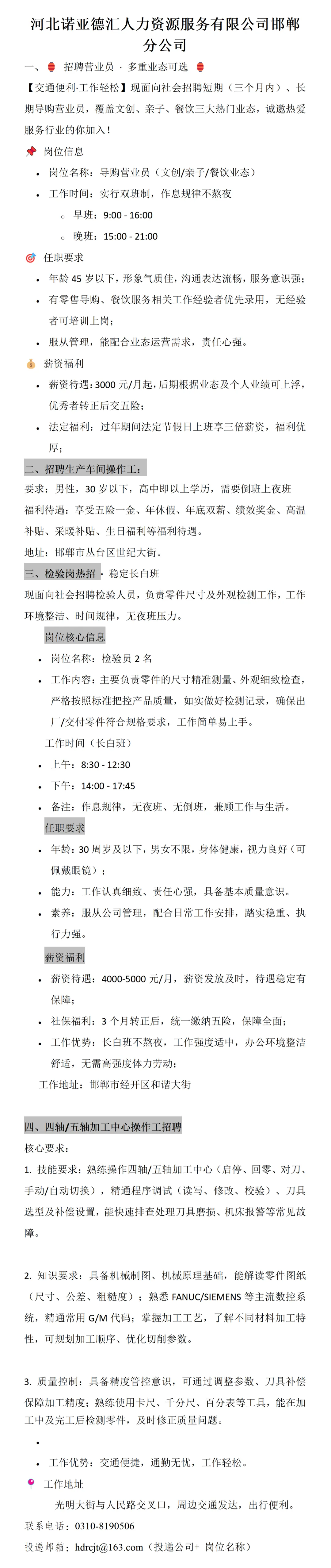 >邯郸市人才发展集团 · 招聘快报 |河北诺亚德汇人力资源服务有限公司分公司