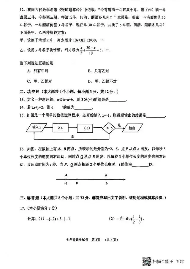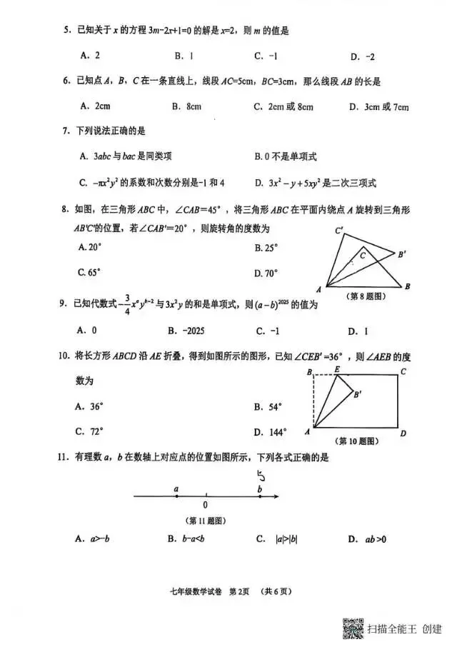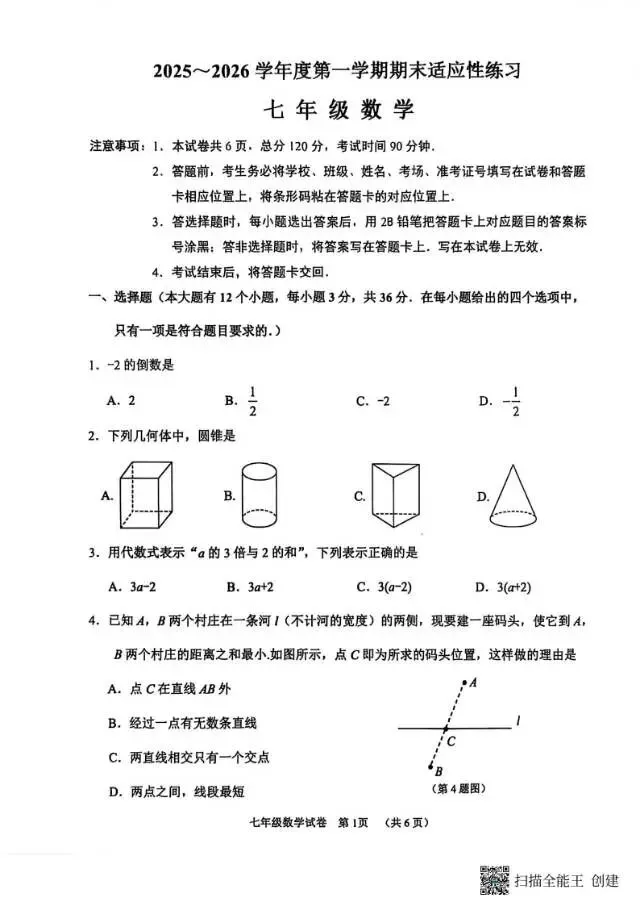 【期末真题】2025-2026学年石家庄市桥西区七上期末数学试卷