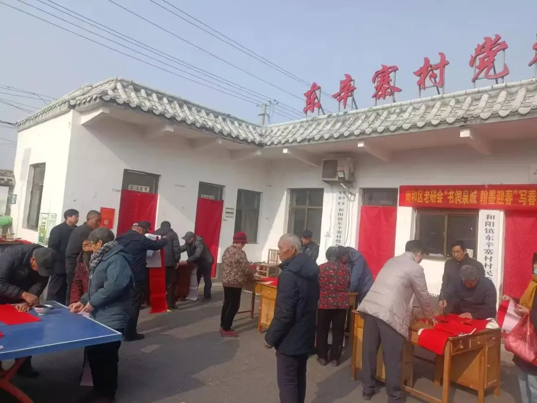 2026年1月27日上午,南和区老研会在谢长虹会长带领下,一行十余人专程来到和阳镇东辛寨村委会活动室。在村支书李伟的组织下,乡镇主管领导全程陪同,开展了这场为乡亲们写春联送祝福的活动,受到了广大群众的热烈欢迎。