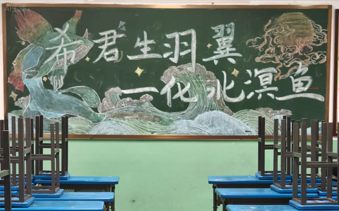 “希君生羽翼,一化北溟鱼”——这幅由学生共同创作的黑板报,是鲲鹏1班精神的缩影。她鼓励孩子们用文字与画笔表达对成长的期许,从“初一,你好!”的开学主题墙,到“中秋话团圆”的传统文化展,每一期班级文化创作都让教室变成了会说话的成长空间。