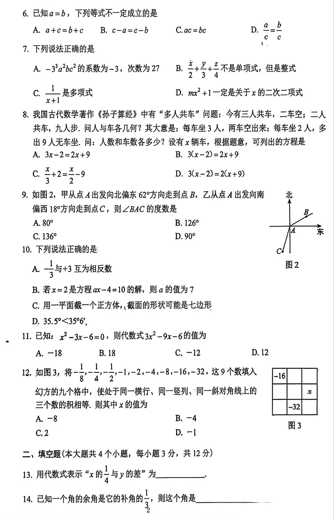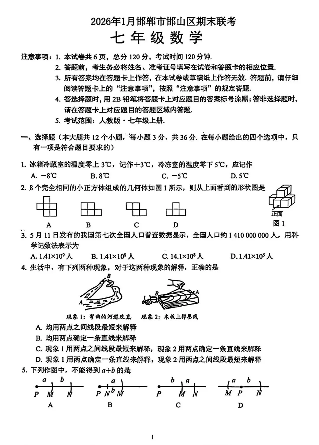 >期末试卷|2025-2026学年邯郸市邯山区七上期末数学试卷