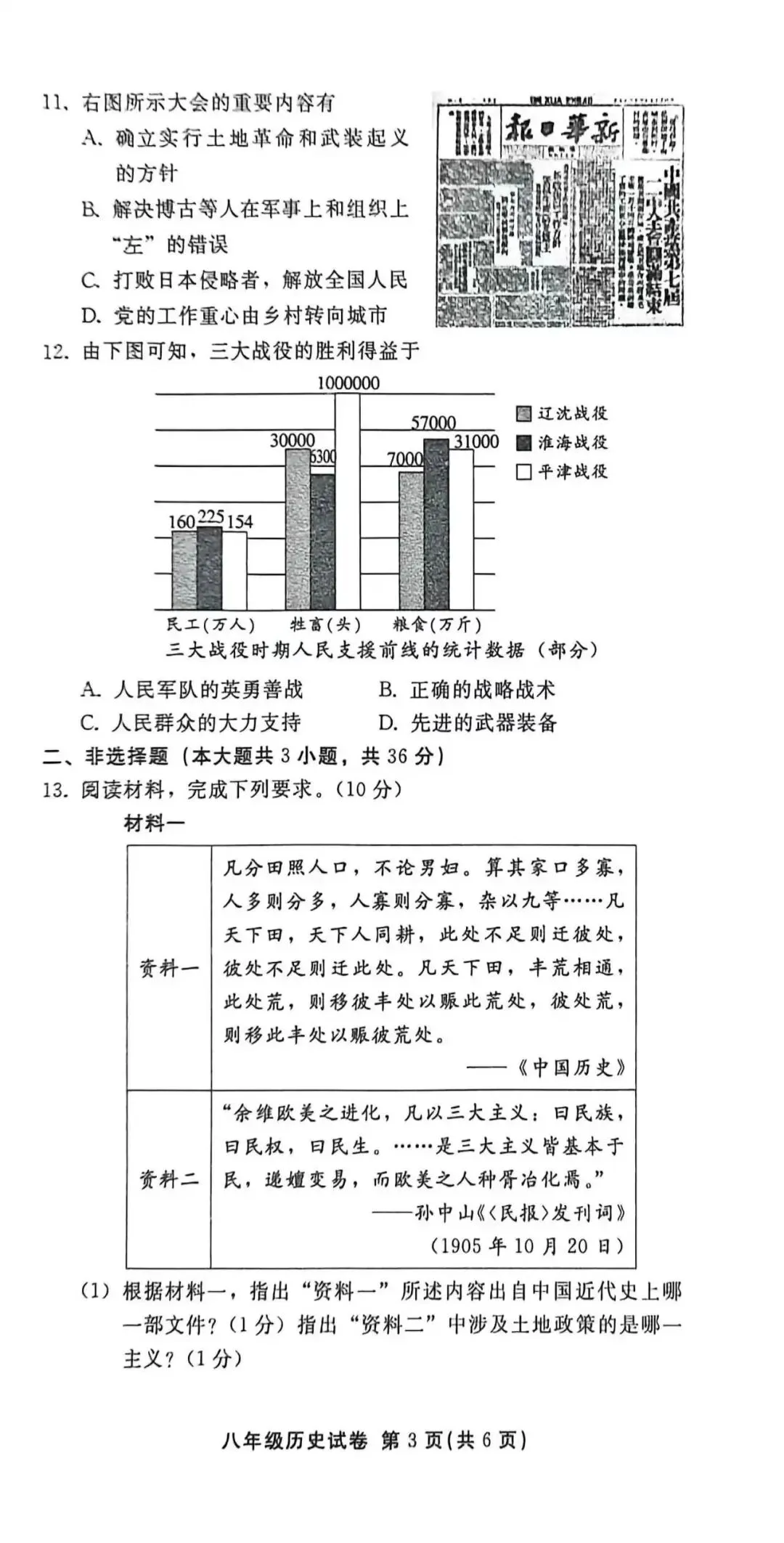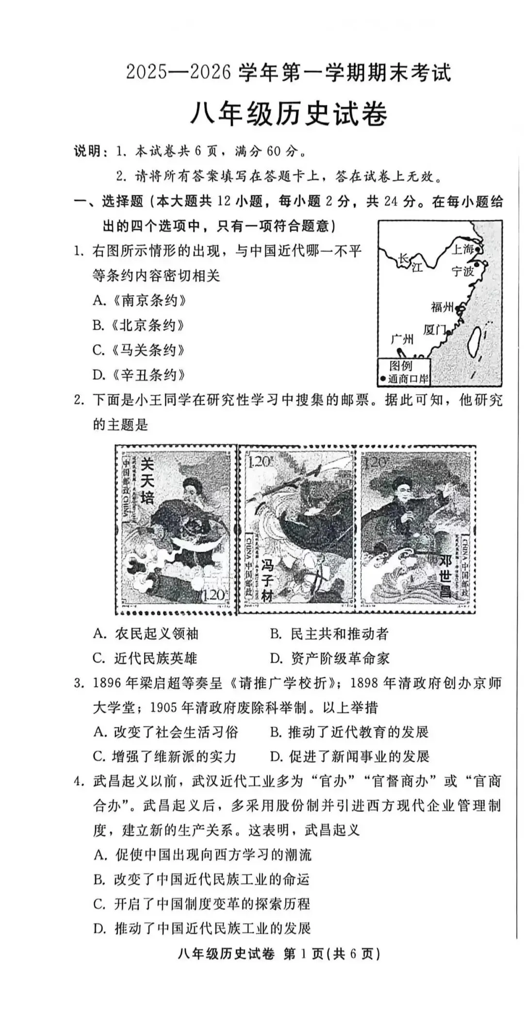 2026年1月邢台市八年级上期末考试历史试卷(含答案)