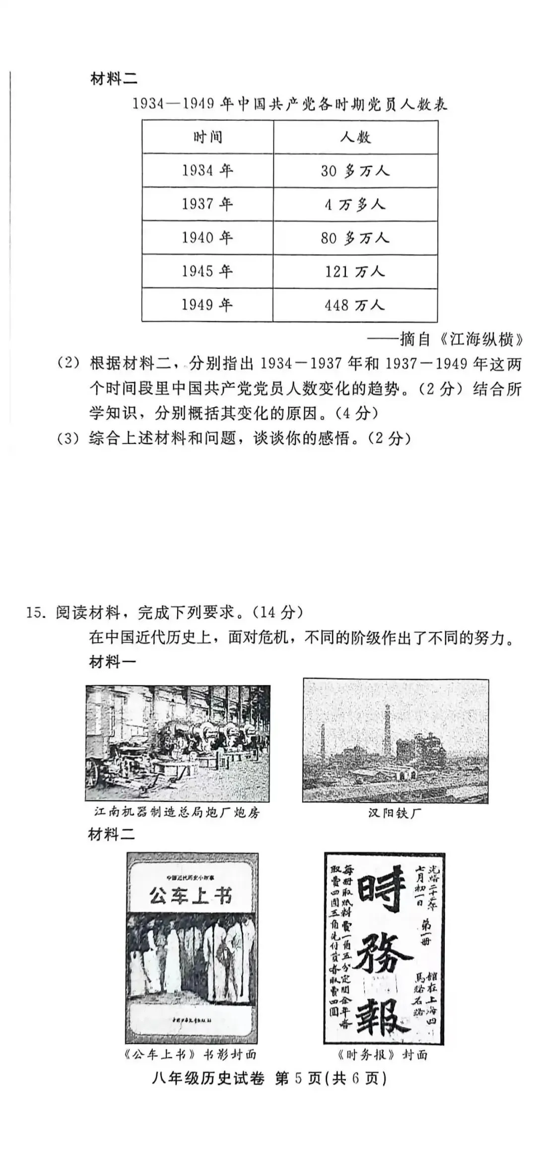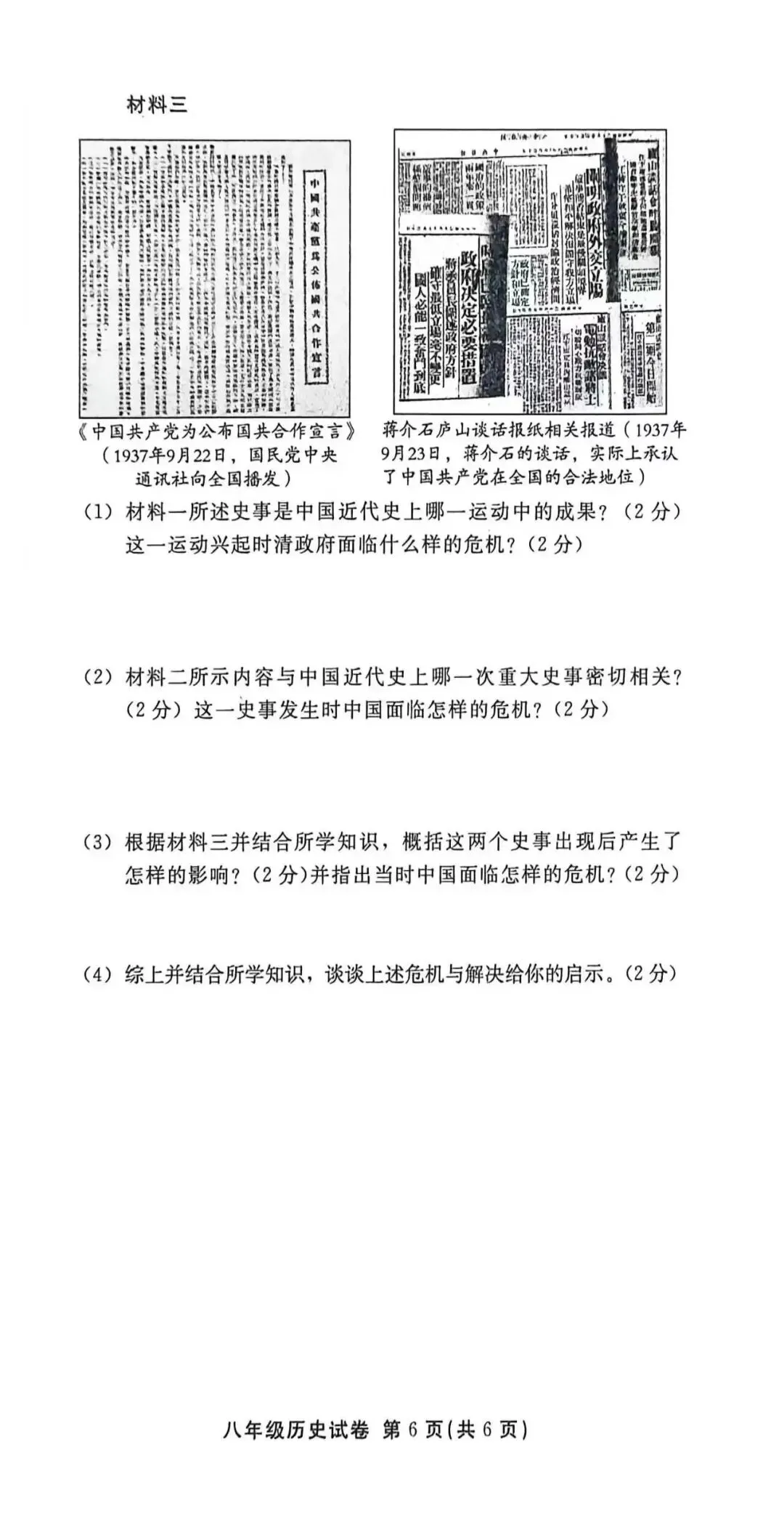 石家庄43中八年级上学期期末考试历史试卷