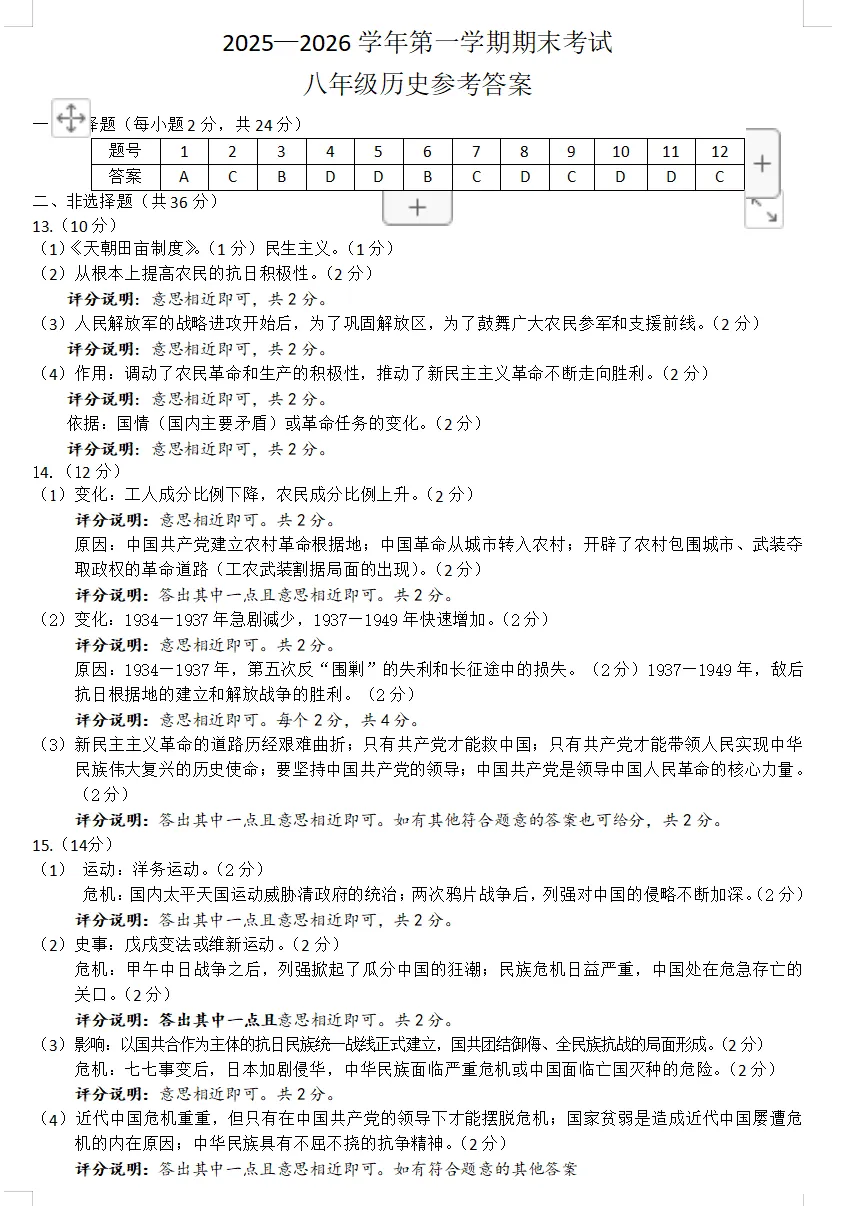 >2026年1月邢台市八年级上期末考试历史试卷(含答案)