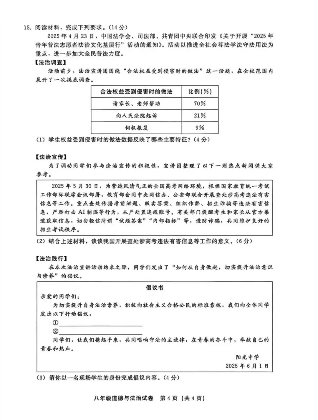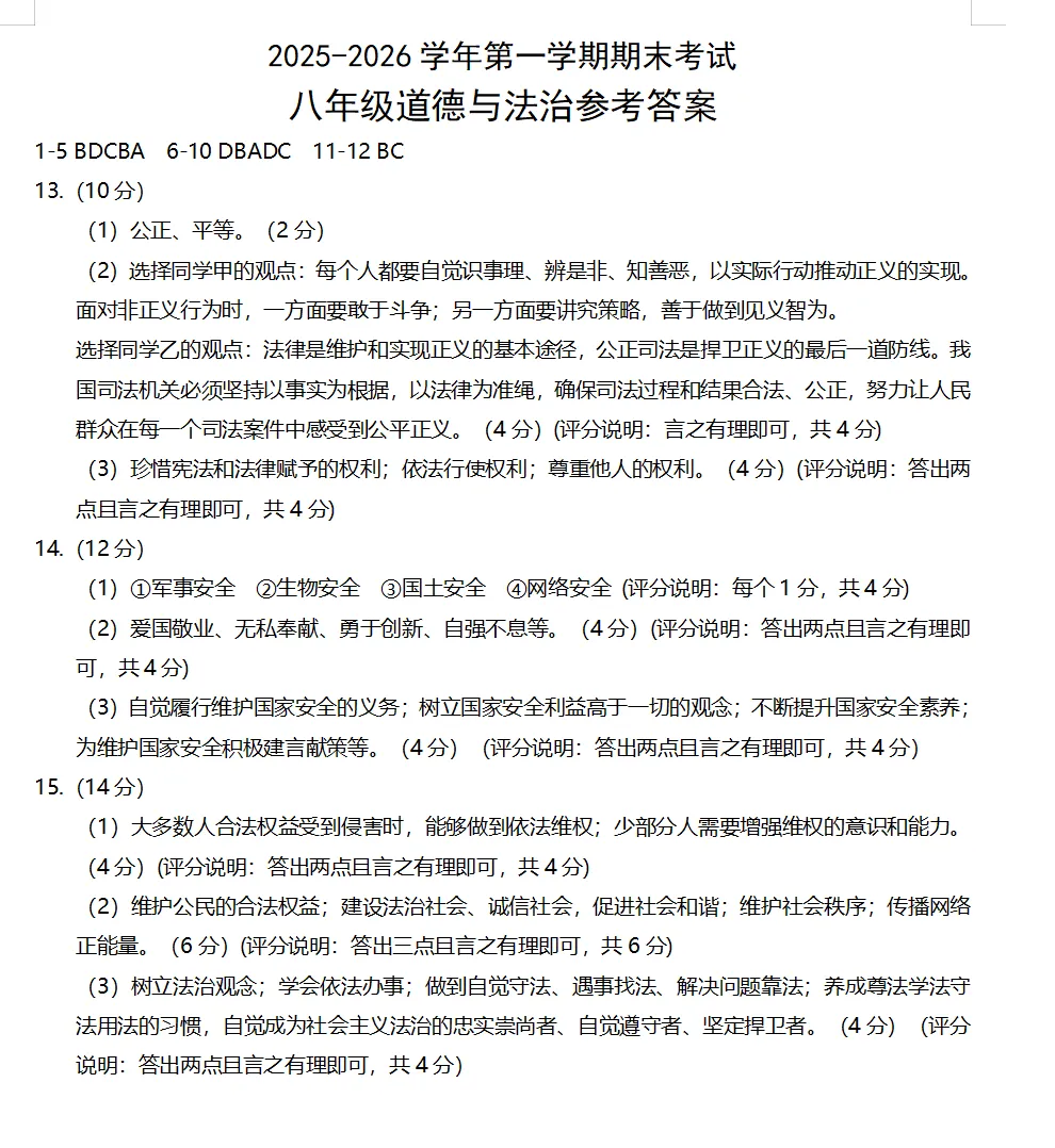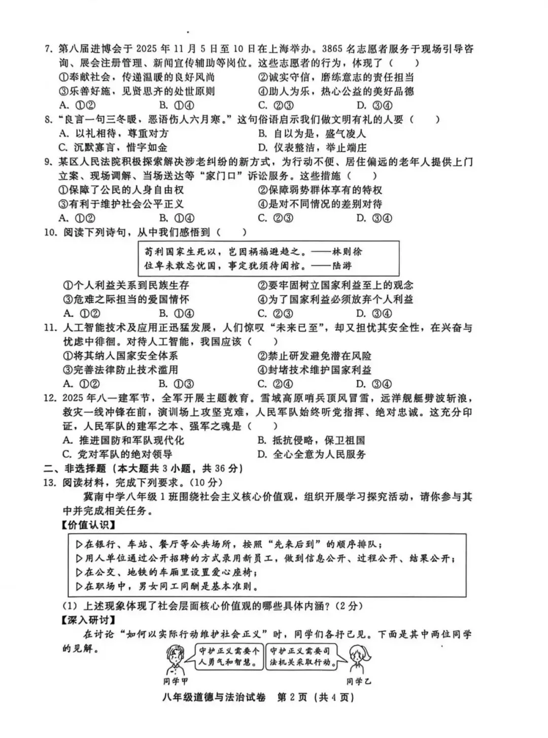2026年1月邢台市八年级上期末考试道法试卷(含答案)