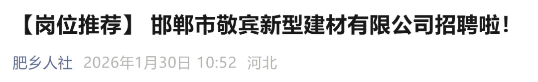 邯郸市敬宾新型建材有限公司招聘12人公告