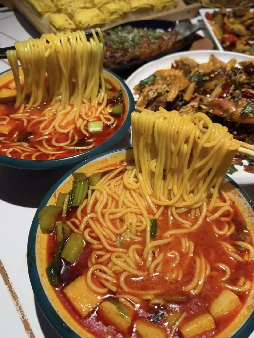 然后必须夸夸那碗麻辣烫,本来没想点,但看几乎每桌都有,忍不住也要了一碗。“嚯!这老式麻辣烫,一闻味儿就对了!” 汤底是那种醇厚的辣香,不是干辣,是带着骨汤韵味的香辣。里面料也给得足,青菜、豆皮、粉条…吸饱了汤汁,“辣香辣香的”, 嗦一口粉,喝一口汤,浑身都暖了!“一碗真不够塞牙缝的,要不是肚量有限,真想再来一碗!”