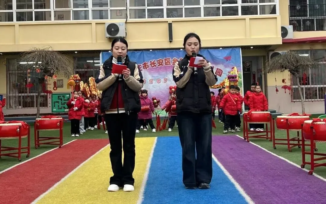 在欢声笑语与热切期待中,迎来了石家庄市长安区金色阳光幼儿园“福马贺新岁 童趣迎新春”庙会活动,主持人贾老师和李老师登场,大家期盼已久的庙会正式拉开帷幕!