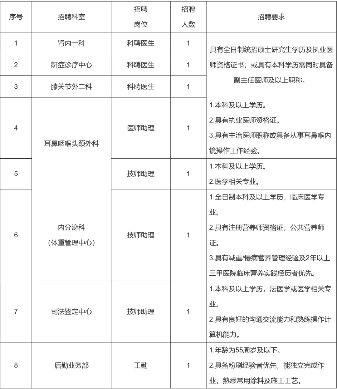 报名要求:请有意向人员携带报名表及与招聘岗位相符的毕业证、执业证、职称证、身份证等相关材料复印件报名。