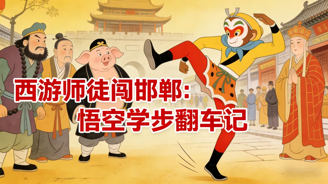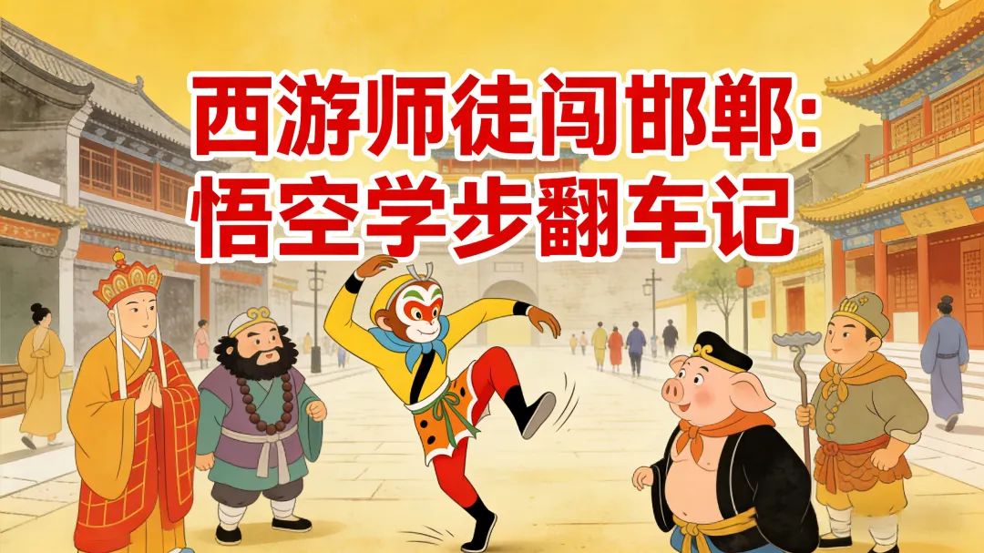 四人落了云头,刚进邯郸城,就见街上行人走路姿态优雅,腰杆挺直,步伐轻盈。八戒看得眼睛发直:“我的娘哎,这邯郸人走路也太好看了吧,比高老庄的村花走得还俏!”悟空撇了撇嘴:“多大点事儿,俺老孙七十二变,想学啥学不会?”说着就撇下师父师弟,跟着街上的行人学起走路来。
