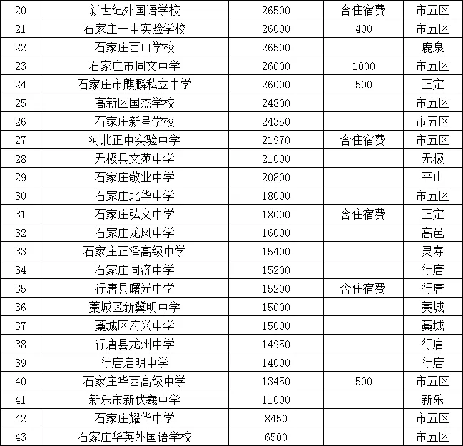 石家庄高新区精英中学42900,石家庄瀚林学校40000,