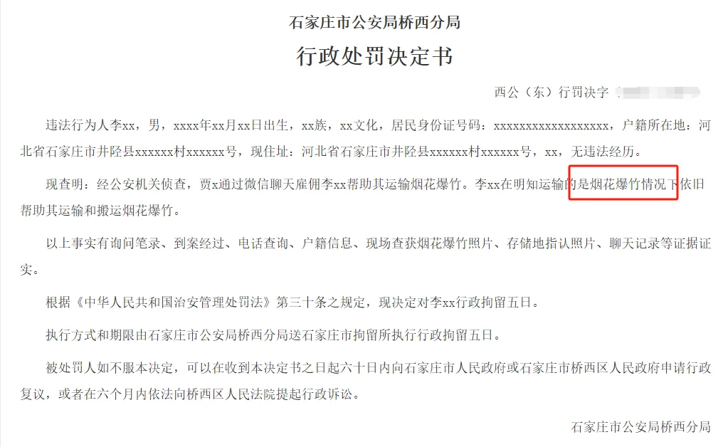 根据《中华人民共和国治安管理处罚法》第三十条之规定,现决定对李xx行政拘留五日。
