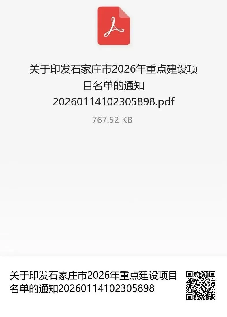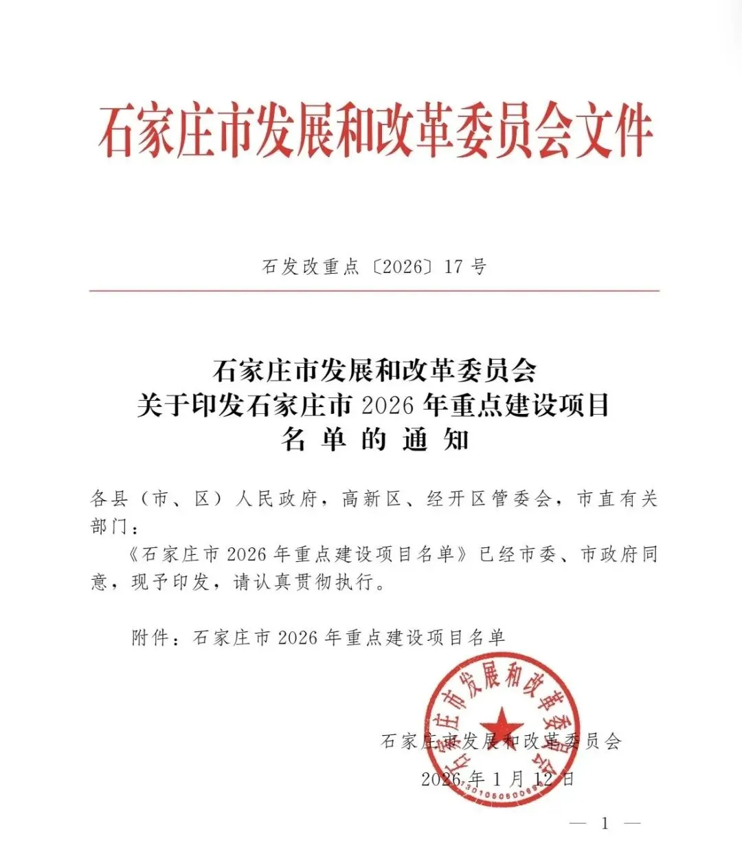 >【转发通知】关于印发石家庄市2026年重点建设项目名单的通知