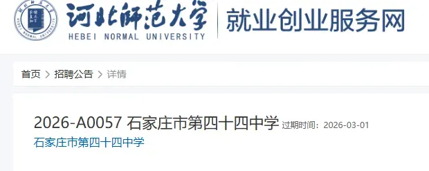 石家庄市第四十四中学面向2026届部属公费师范生招聘正式在编教师