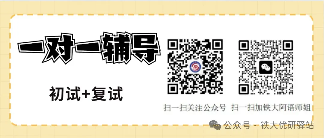 铁大优研驿站课程及资料设置全面且具有针对性,涵盖了铁大公共课和专业课的各个科目。无论是晦涩难懂的政治理论,还是变幻莫测的英语语法,亦或是专业领域的前沿知识,我们都有系统而深入的讲解,由历年上岸分数前5%的学长学姐们辅导,大部分专业为初试复试双第一学长学姐辅导。同时,我们还为学员提供个性化的学习规划和全程的学习指导与答疑,根据你的基础和目标,制定专属的学习方案,确保你在有限的时间内实现高效学习。