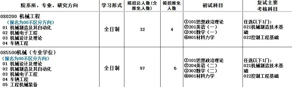 机械专业考情分析