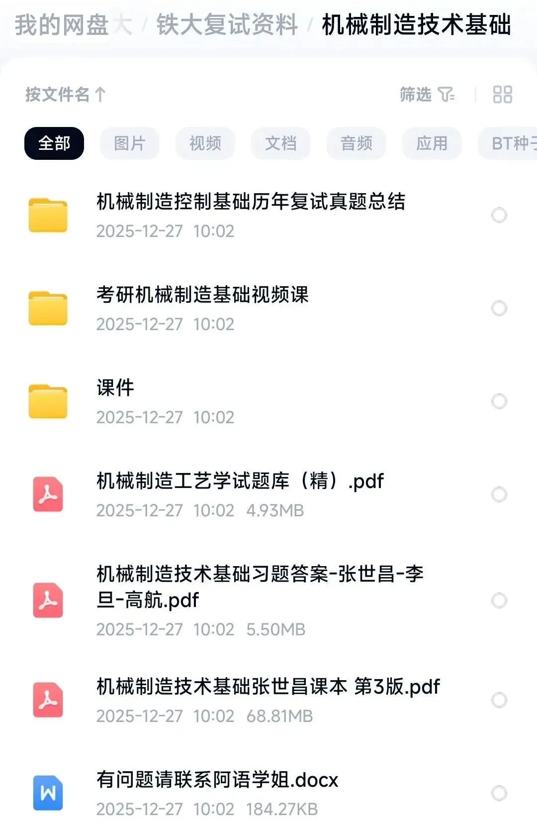 MBA复试、 MEM复试、 物流工程与管理、 风景园林、 C程序设计、 安全管理学、 材料现代分析方法、 电气专业复试、 混凝土复试、 计算机网络复试、 机械工程控制基础、 机械制造技术基础、 数理复试、 铁道工程复试、 土力学复试、 建筑学、 交通运输复试资料(道路交通规划)、 马克思主义(毛泽东思想基本原理)、 模电复试资料、 数据库原理等,