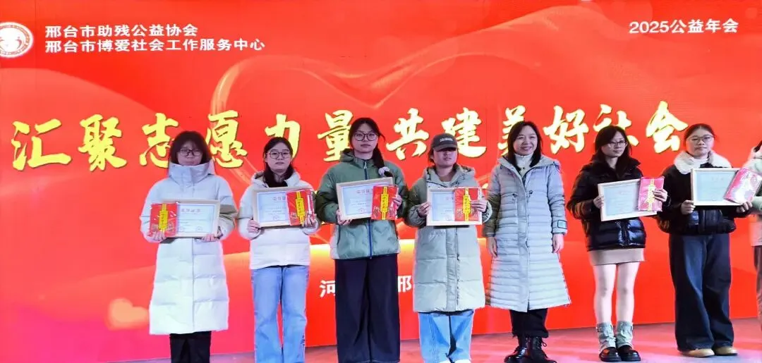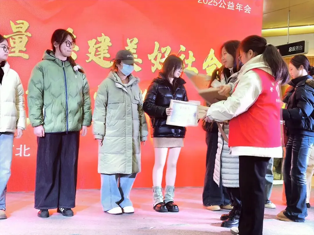 邢台市博爱社会服务中心在万达广场举办2025年年度青年志愿者表彰大会,对表现突出、无私奉献的志愿者个人及团队进行嘉奖,肯定其价值,到场50余人参与。
