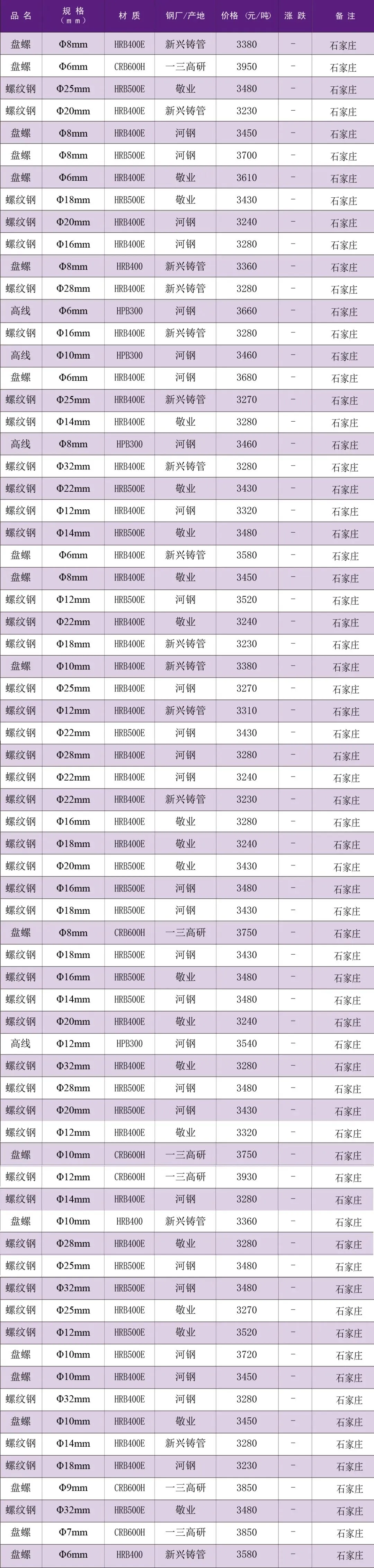 【每日一价】1月30日石家庄市场建筑钢材价格行情