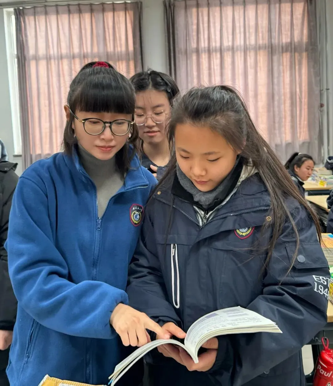 她专业扎实、教学有方,黑板上的知识点条分缕析;她诲人不倦、精益求精,作业全批全改,毫不懈怠。清晨的曦光中,有她辅导朗读的耐心;午后的暖阳下,有她伏案批改的专注;深夜的操场旁,有她忙碌奔走的执着。