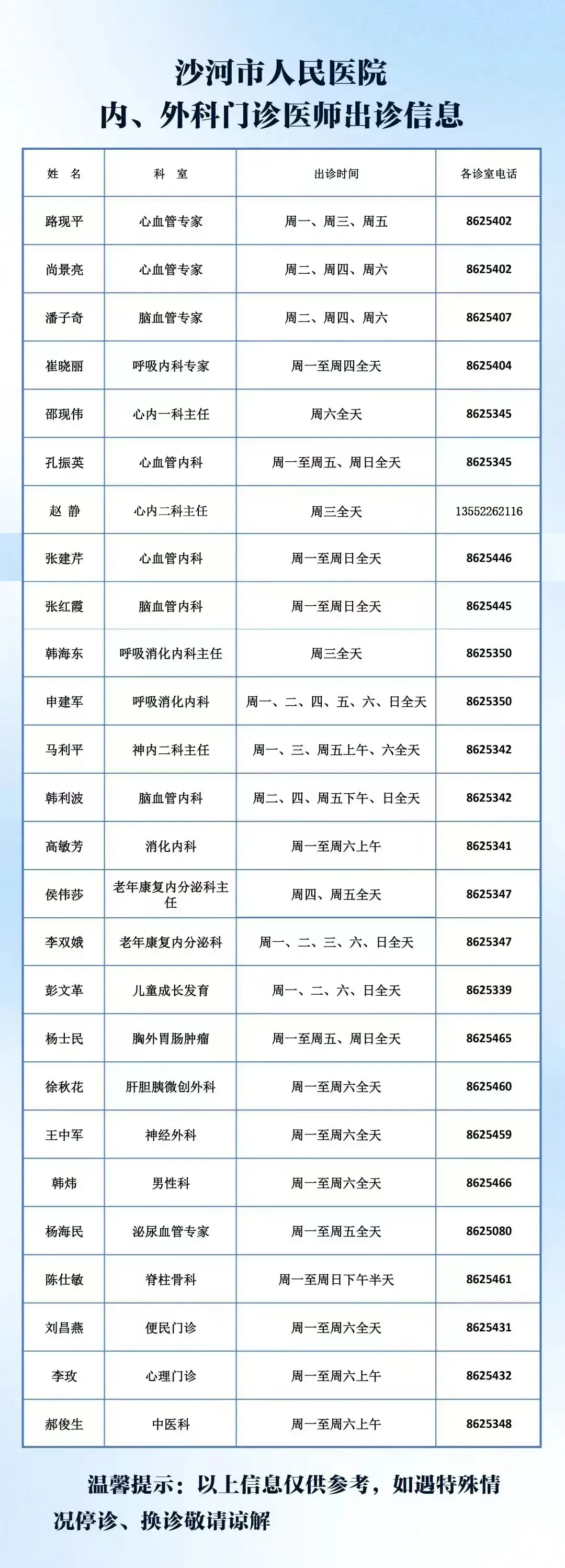 2月4日(周三)邢台市中医医院妇科、康复科专家将到沙河市人民医院坐诊