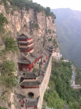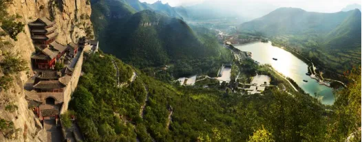 娲皇宫建筑被誉为“活楼吊庙”,建筑风格靠崖依洞,依山就势,运用高层建筑重心偏离安全率的原理建成,集文化底蕴与古建奇观于一体。