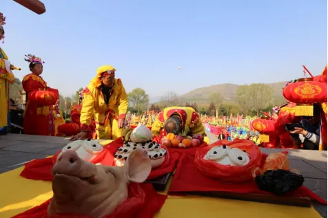 女娲祭典是中国传承时间最长、规模最大、影响地域最广的祭祀女娲的大典,列入了国家第一批民俗类非物质文化遗产名录。农历三月庙会时全国多地的华人以及海外华侨前来祭拜华夏人文先始,因此娲皇宫成为了全国祭祖圣地之一,被誉为“华夏祖庙”。