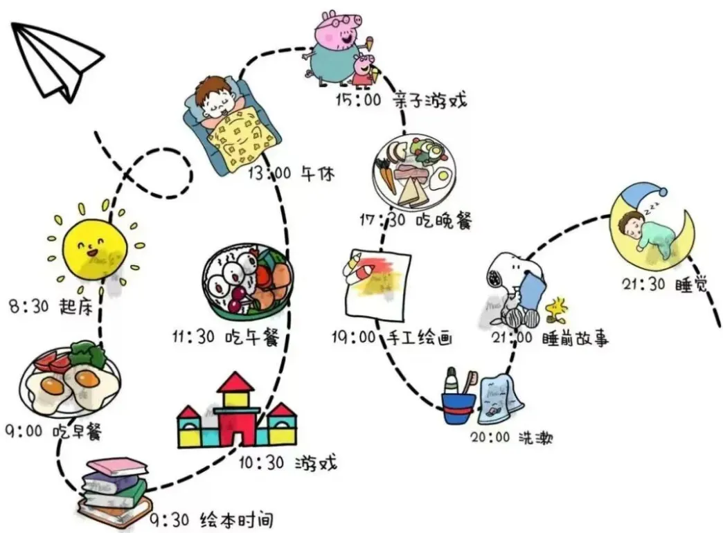 孩子们在幼儿园里,生活已经有了一定的规律,因此在寒假,家长们可根据孩子已有的生活规律,制订一张日程表。与孩子交流、讨论并制定出每日的活动内容,如学习、游戏、体能运动、自我服务等。根据实际情况为孩子制定专属时间表,让孩子拥有快乐、有意义的假期。