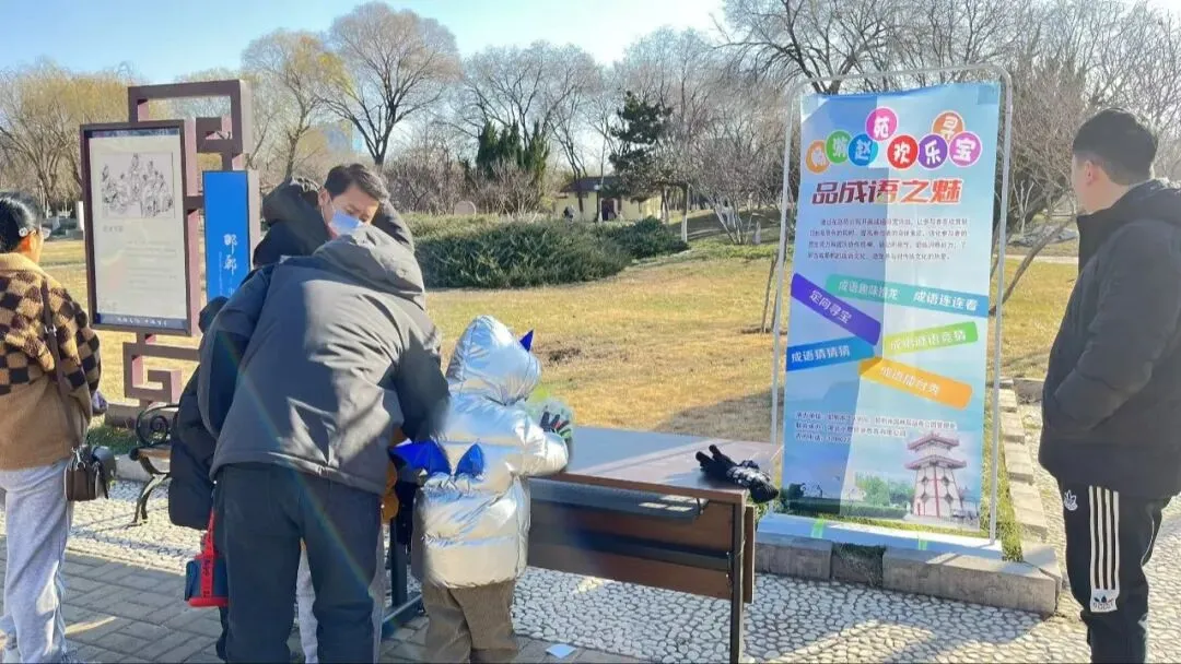 邯郸市博物馆讲解员向参与活动的市民生动讲述了“邯郸学步”“完璧归赵”等成语故事,备受期待的“寻成语宝藏”环节更是将活动推向了高潮。此次活动还设置了互动体验区,摆放着各种与成语相关的道具和展品。