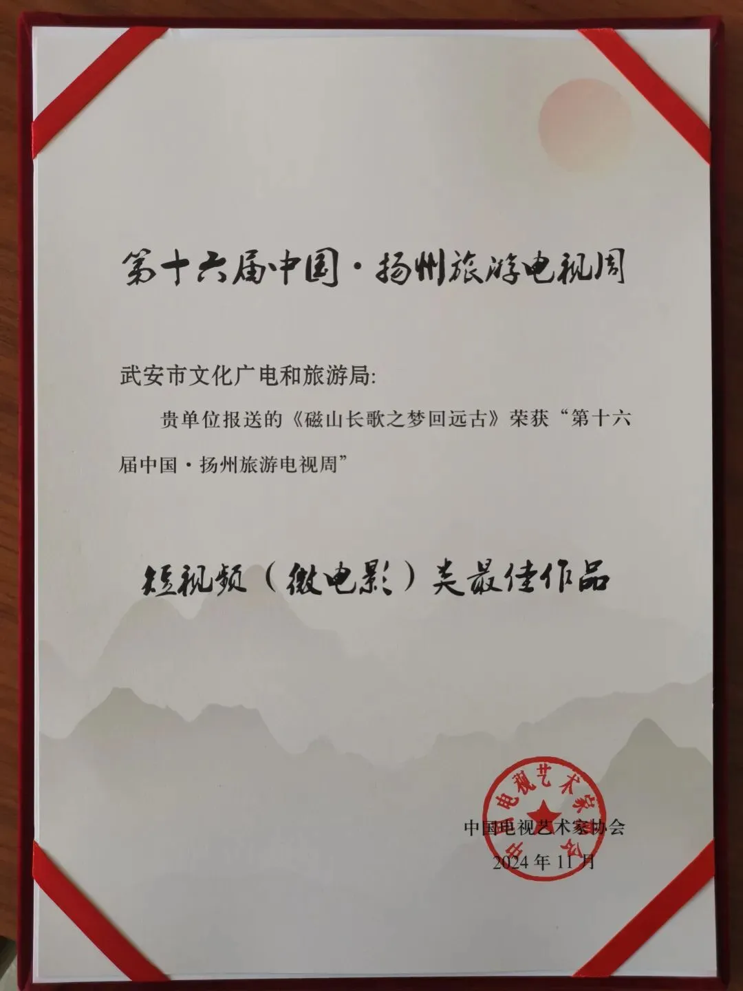 日前,由中国电视艺术家协会主办的“第十六届中国旅游电视周”颁奖活动在江苏扬州市举行。河北省8部作品获奖,其中邯郸武安市微短剧《磁山长歌·梦回远古》获短视频(微电影)类最佳作品奖。