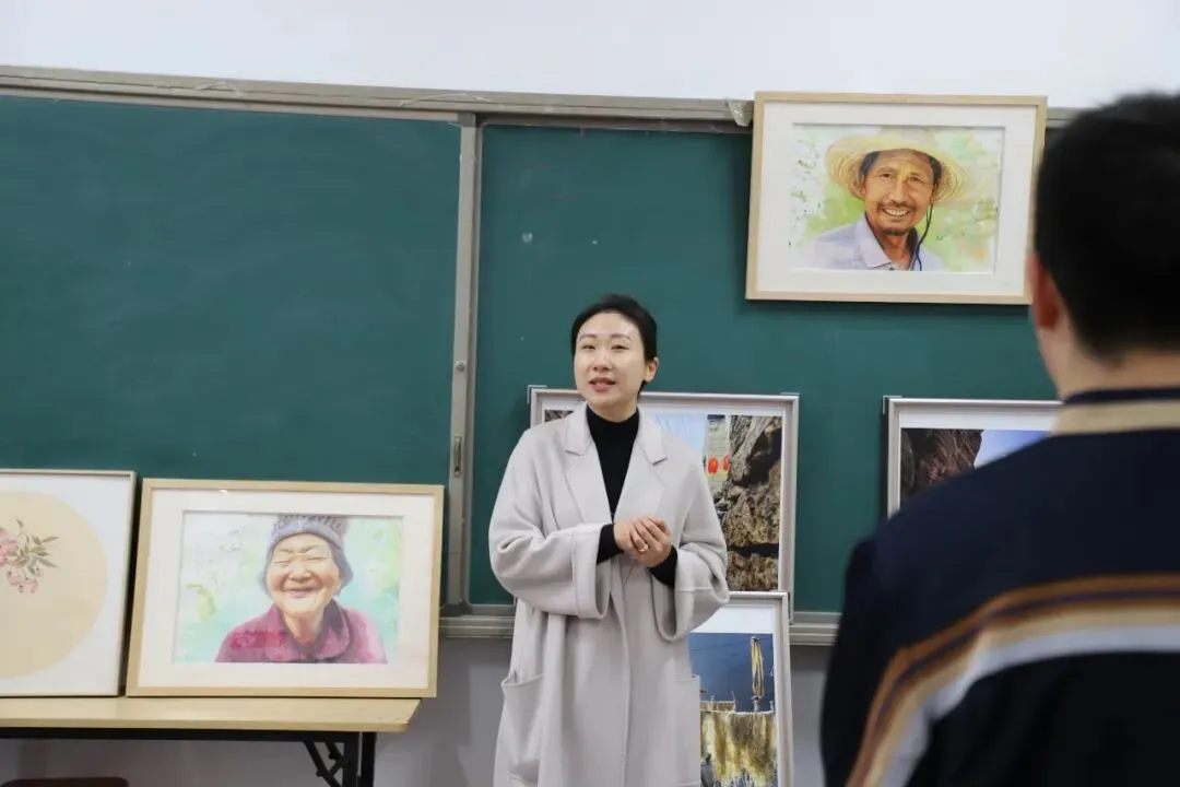活动不仅限于书法。群艺馆的老师们还精心准备了油画作品赏析环节。他们以通俗易懂的语言,引导同学们观察油画的色彩、光影与构图,讲述画作背后的故事与情感,在中西方艺术的对比与交融中,悄然拓宽了学生的审美视野,播下了美的种子。