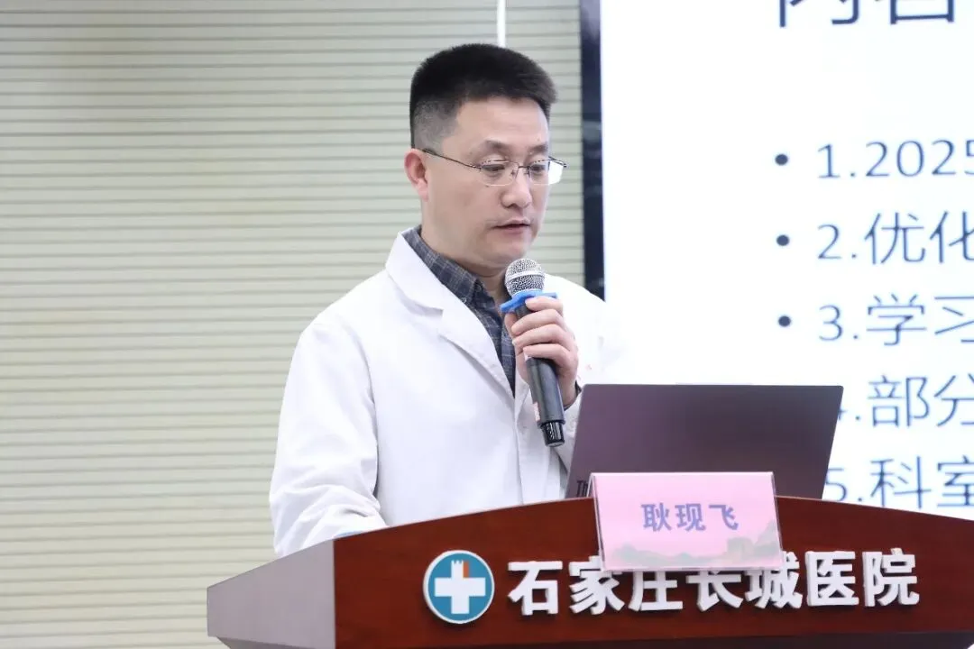 会上,石家庄长城医院杨文学院长就医院2025年度工作总结及2026年发展规划作了详细发言。他提到,2025年医院各项工作稳步推进、扎实落地,核心指标持续优化调整,各科室有序推进各项工作、持续完善提升,体检等相关工作扎实开展、稳步提质;同时也客观坦言,过去一年医院发展过程中仍有一些细节之处需要不断改进完善。随后,他就医院各项重点工作开展情况逐一进行了梳理说明。