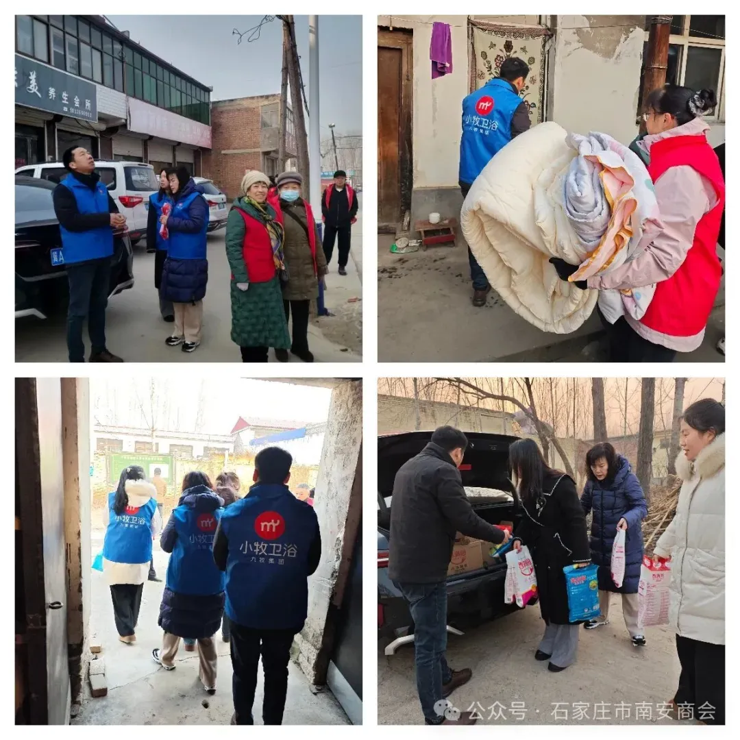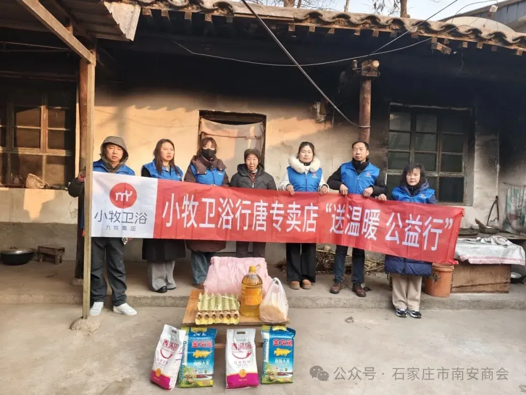 2026 年 1 月 24 日,石家庄市南安商会会员企业小牧卫浴石家庄运营中心联合石家庄爱心公社,赴行唐县城寨乡颖南村开展 “寒冬送暖、行唐赋能” 大型公益慰问活动,为当地10 户困难家庭送去米面油、鸡蛋,挂面,棉被毛毯等御寒衣物和生活用品,以实际行动传递温暖、践行社会责任。