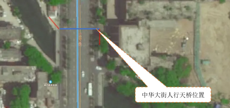 中华南大街过街天桥:东西向跨越中华大街,跨越处道路红线宽度 70m,净宽适配行人通行需求。