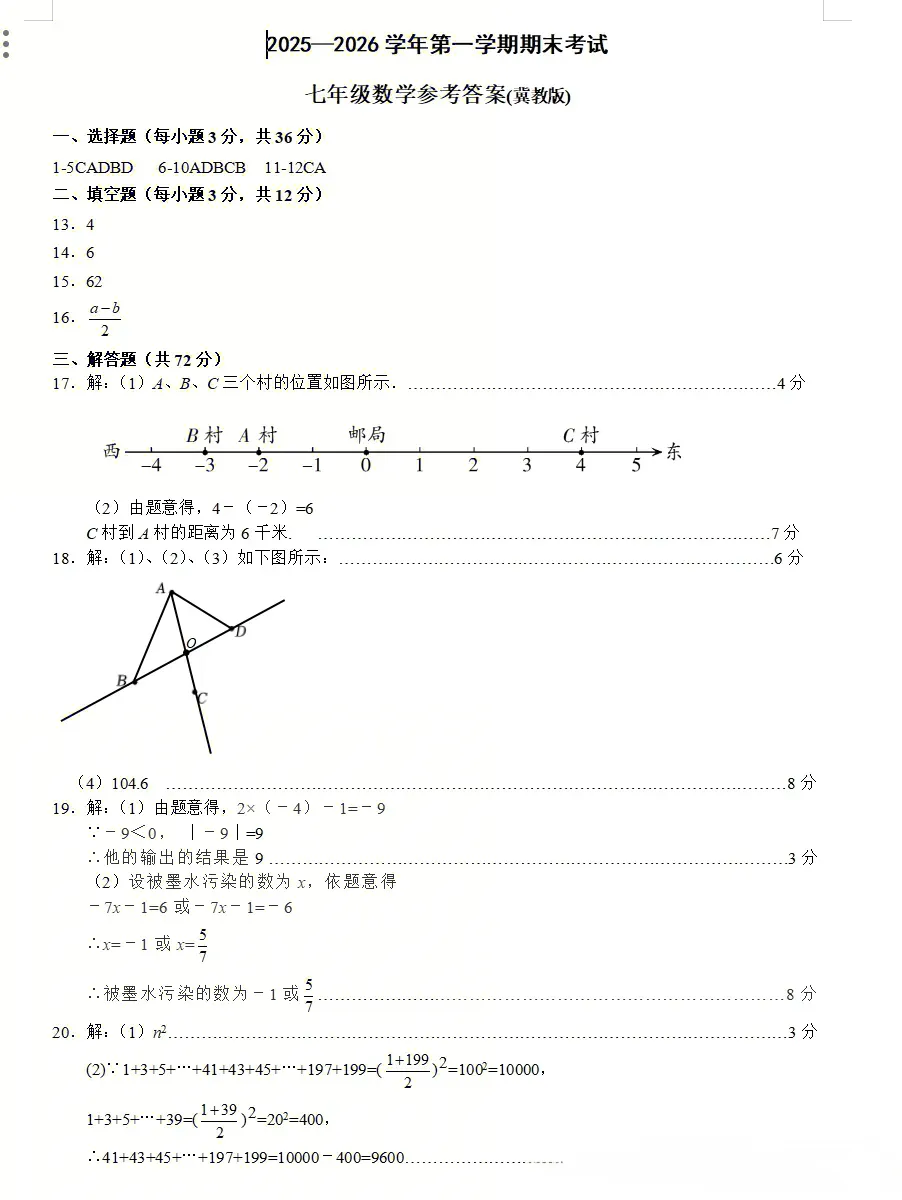 2026.1邢台市七年级期末全科试卷