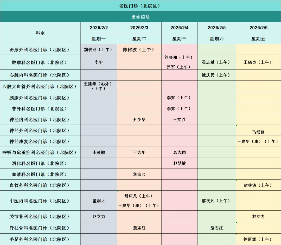 >邢台市人民医院名医门诊出诊信息(2月2日-2月6日)