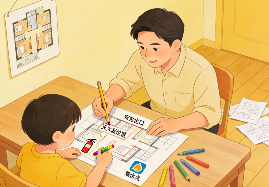 倡导家长与孩子携手化身“家庭消防员”,定期开展家庭火灾隐患大排查,共同绘制家庭疏散路线图,定期组织应急逃生演练,熟练掌握报警流程、初起火灾扑救及自救逃生技巧。鼓励有条件的家庭配备独立式感烟火灾探测报警器、灭火器等消防器材。家长要教育儿童不玩火。要遵守当地烟花爆竹燃放规定。