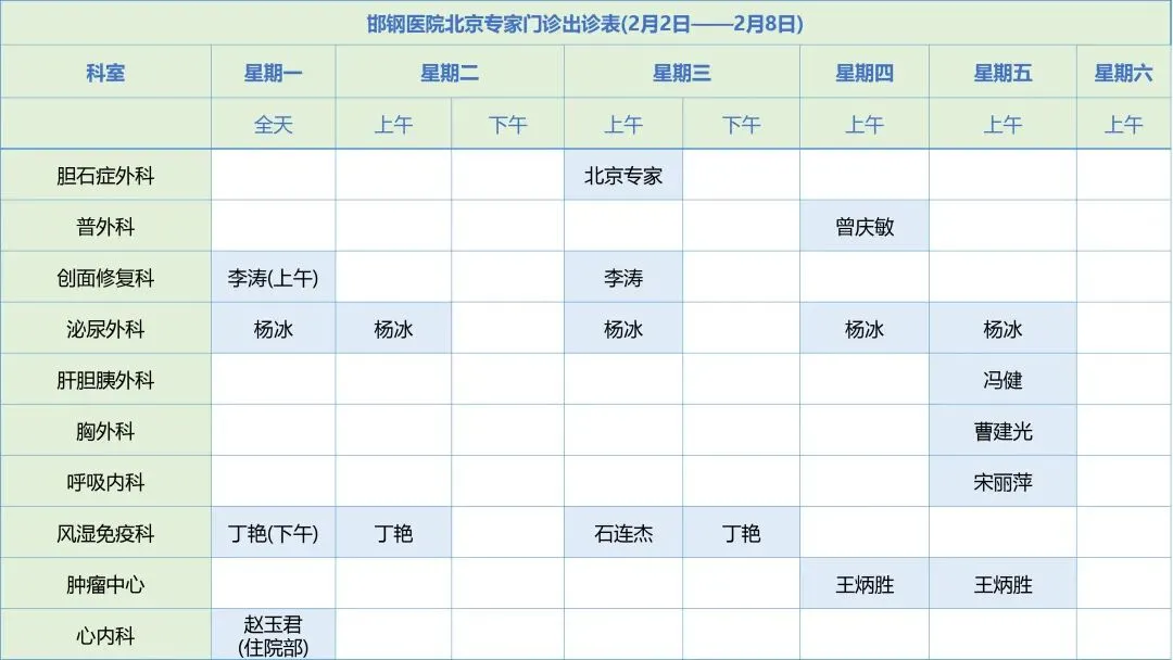 【邯郸人家门口的北京专家】2026年2月2日—2月8日北京博士专家出诊信息一览表