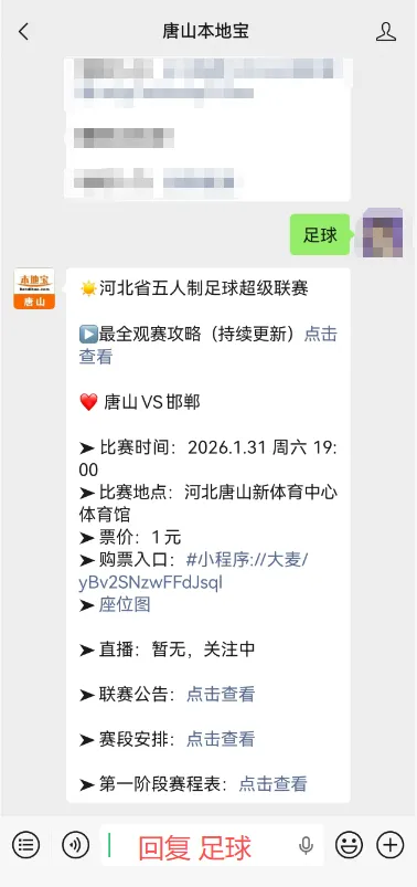 聊天框回复【足球】获取