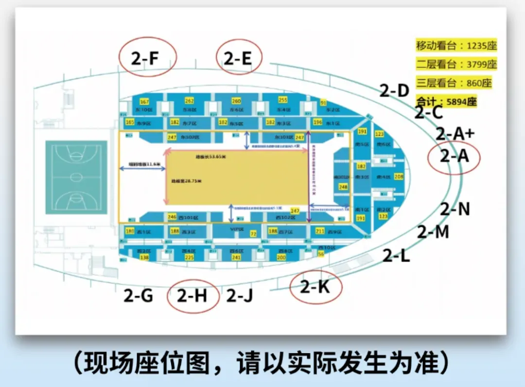 观众入口:观赛市民及球迷们,可从体育馆二层2-A、2-F、2-E、2-H、2-K入口,有序进场观赛。