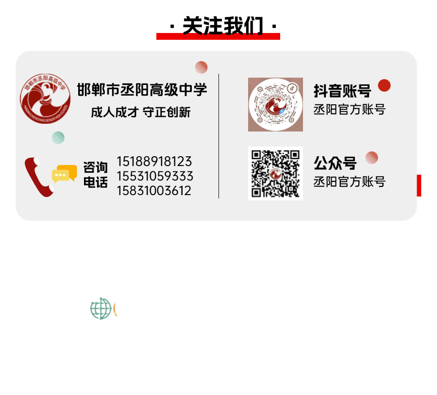 丞阳高中依托教育集团发展优势,建校三年来,贯彻落实“为国育人,为党育才”的教育方针,培养了众多优秀学子,赢得社会各界的广泛赞誉。学校从发展需求出发,始终坚持德才兼备的用人标准,公开、公平、公正、择优选拔的用人原则,欢迎有志于教育事业之俊才加盟我们的队伍。
