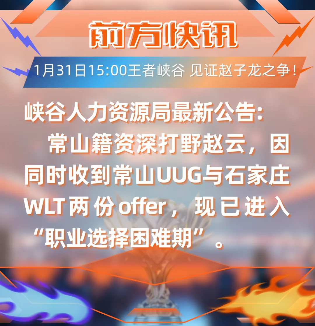 明日15:00准时峡谷展开正面交锋。胜者不仅赢得荣誉,更将获得“常山赵子龙”称号使用权。胜负交给操作,历史留给山河。